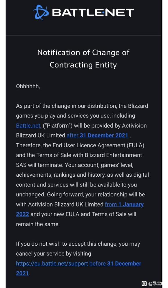 而就在前一段时间暴雪战网发了一条通知,大意就是 2022 年暴雪提供的服务将会转移至给动视。