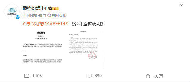 今日,《最终幻想14》官方发布公开道歉说明,对涉事员工予以开除处理,永不录用,并对其上级领导问责处理。