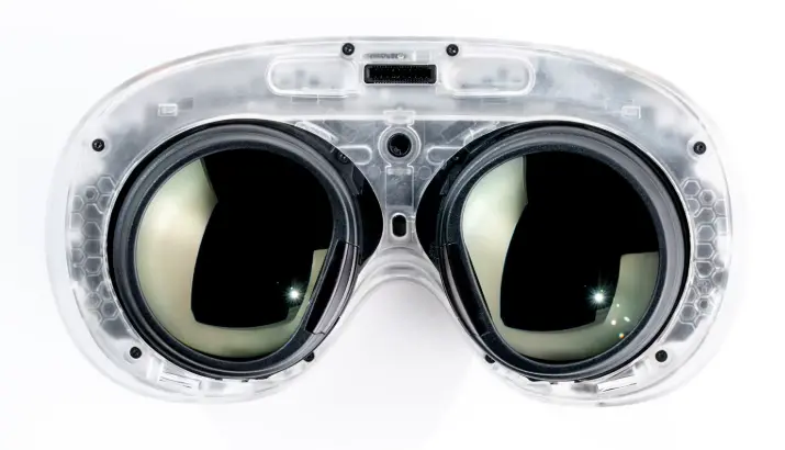 光学特性方面,头显采用定制 pancake 透镜方案,包括 2160 x 2160 LCD 面板,每眼各一,支持 72 - 144Hz 刷新率