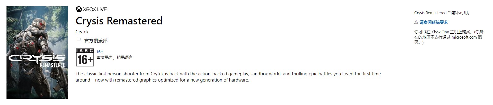 《孤岛危机:复刻版》游戏实机预告公开 微软商店泄露