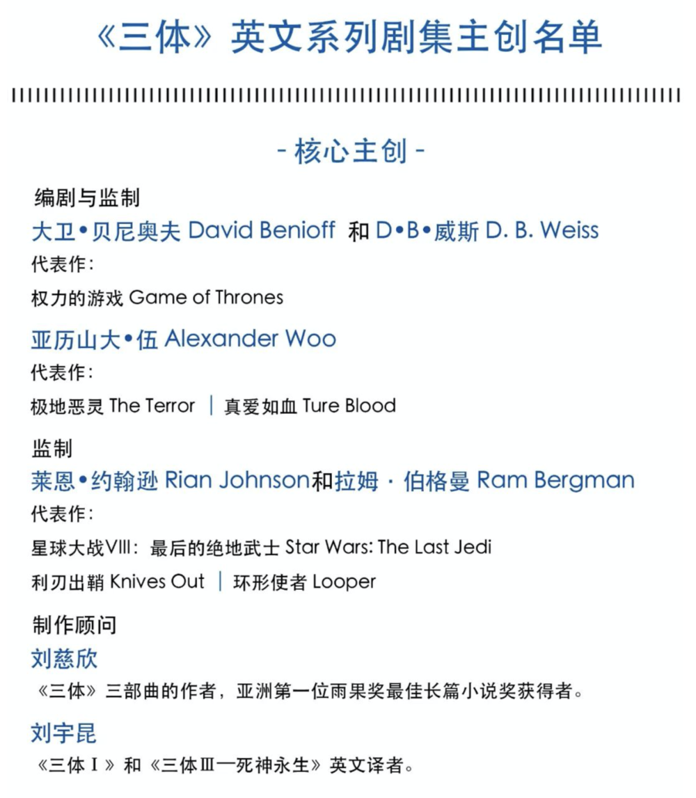 当然,即使 Netflix 英文《三体》翻车了,《三体》粉丝还有个备选,前段时间腾讯还公布了《三体》中文电视剧开拍,说是会在 2022 年上映。