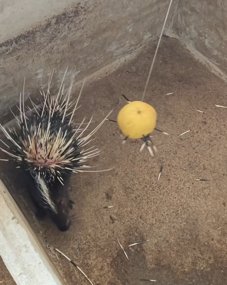 为高效且无痛取刺,小伙摸索出独创方法,他和家人使用纸板、柚子、泡沫板等物品引诱豪猪主动射刺,既不伤害豪猪,又能便捷收集。