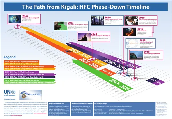 在多边基金的资金和技术援助下,发展中国家成功地淘汰了大部分氟利昂类化学物质。从2024年,大多数发展中国家也都开始冻结消费氢氟碳化物(不破坏臭氧层,但强温室效应),并在后续年份逐步削减。