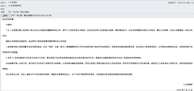 内部信显示,当当网要求业务部门和员工及时与供应商、合作伙伴等沟通该事件最新进展,进一步稳定“军心”。