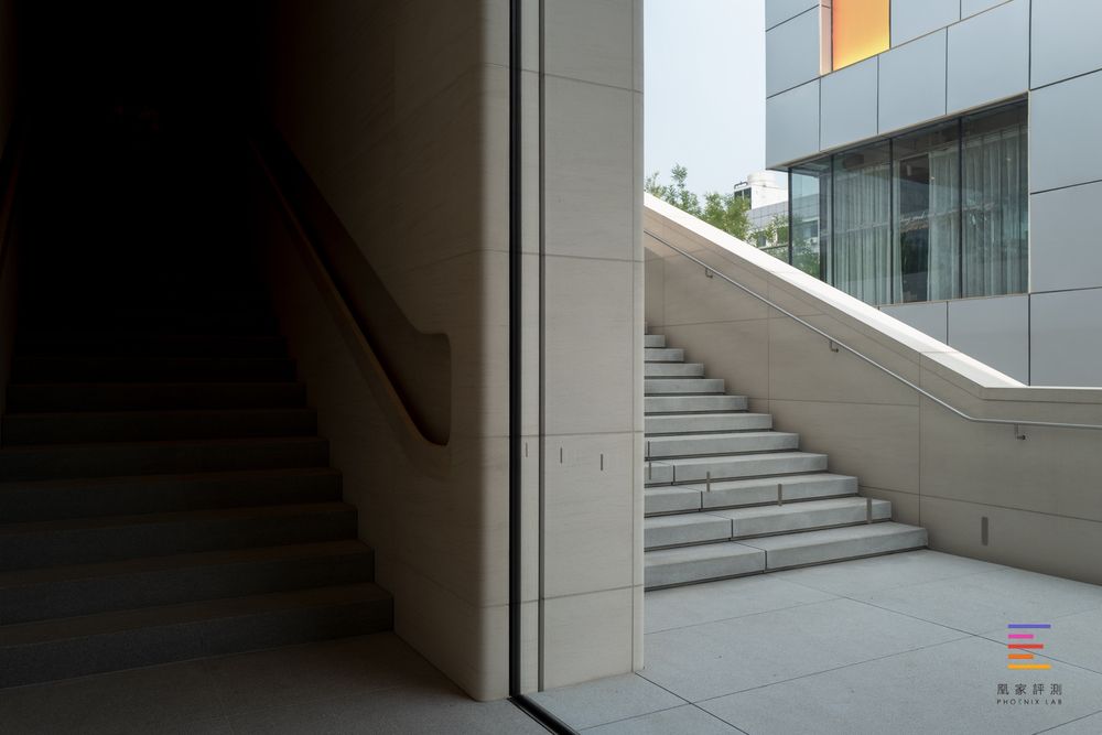 二层分别设立了Forum互动坊、Genius Grove天才园、Viewing Gallery景廊。互动坊用来举办线下的Today at Apple活动,拥有专属的座椅和大屏幕,在这里北京的艺术家、音乐家和创意人士都将展示和分享他们的创作过程;天才园则是取代原来的Genius Bar,通过更加开放的空间满足顾客的维修与技术支持服务,同时还设有开放露台,增强了与外部景观的联结;景廊则设置在互动坊前方,直面门店正门玻璃幕墙,为三里屯的室外广场提供了绝佳的观景平台。