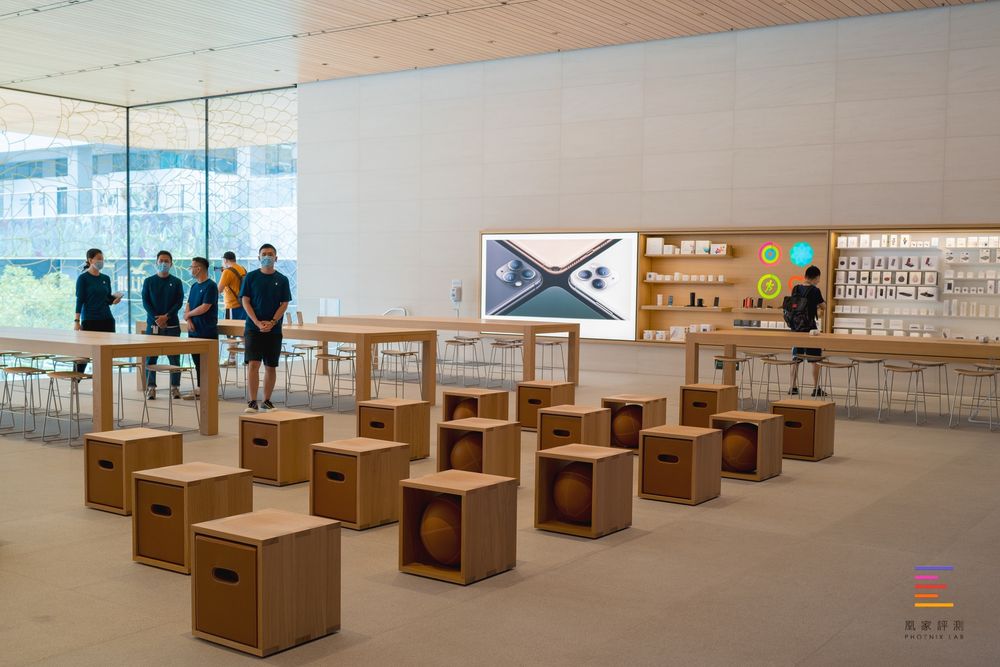 因此出于整个店面的体验与服务的升级,苹果选择在旧店相邻的更大建筑内建立全新Apple三里屯,这家零售店采用目前苹果在全球的最新零售店设计规范,同时在开店日还采用灵感来自中国传统艺术景泰蓝和宝相花的创作进行装潢,店内Genius Grove天才园种植的绿植也选取了北京市市树——国槐,本土气息浓厚。