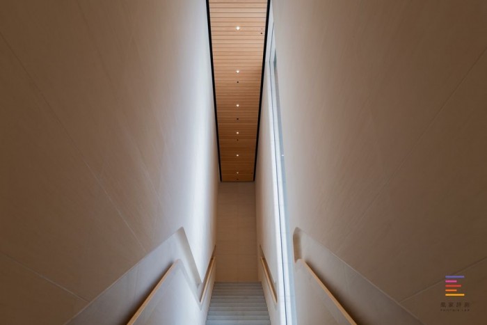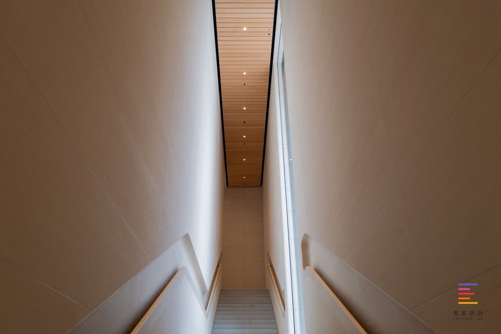 内外的石梯相互平行,在立墙上嵌有苹果经典的长玻璃方便室内采光。