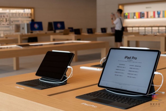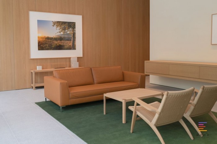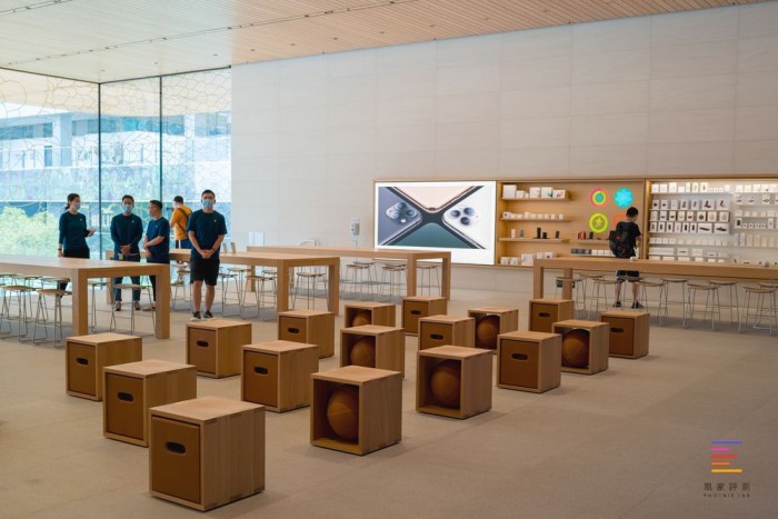 在门店内部,顾客区域主要分为两层,一层是零售、体验区,iPhone、iPad、Mac、Apple Watch、AirPods等苹果产品都在大厅展出,顾客可以直接上手体验,与店员交流选购;同时一层还设有Boardroom商谈室,用来服务企业家、开发者和其他中小企业客户获得个人建议和培训的专用空间,满足大宗客户的需求。