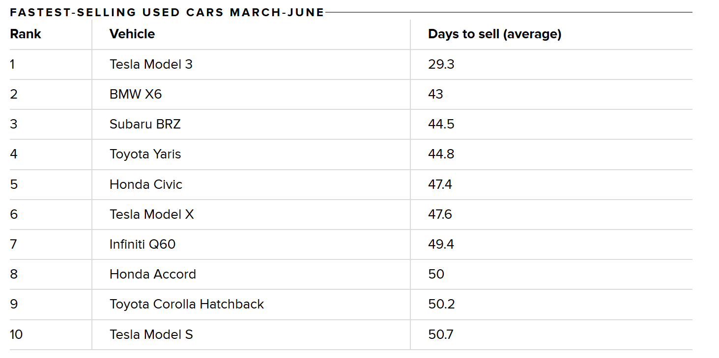 据外媒报道,随着新冠病毒疫情的蔓延,美国人开始勒紧裤腰带过日子,二手车正迅速成为比新车更受欢迎的购买对象。但销售最快的汽车有点出人意料。iSeeCars周二发布的一项研究显示,在2015-2019车型年3月至6月的900多万笔交易中,特斯拉Model 3成为在上市之后销售所花费时间最少的汽车。
