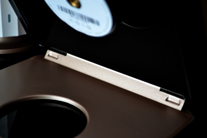 底部则采用金色配色,四角设计有黑色防滑垫,正中设计有一支架孔,可以外接支架类配件让投影仪变得更高,进而获得更舒适的观看角度。但其实大可不必如此,因为联想智能投影仪Air5采用了一项创新技术,一举解决了用户在各场景中转换和角度调节不便的问题,这一点后面马上就会详细为大家展示。