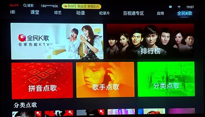 内置的“全民K歌”模块可以让联想智能投影仪Air5瞬间变成一台大型卡拉OK点唱机。