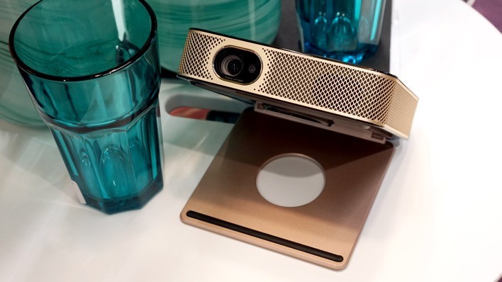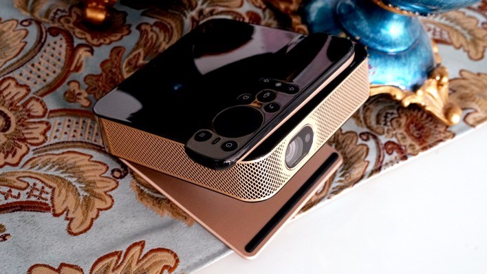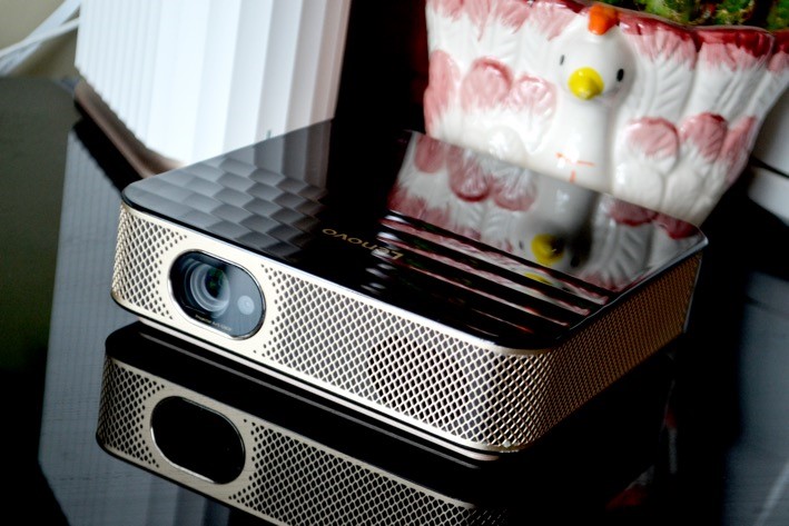 现如今,微投市场可谓是百花齐放,各种形状、各种功能、各价位段让人眼花缭乱,挑选一款适合自己的微投产品需要花费一定时间。相比同行其它微投产品,联想智能投影仪Air5的特点还是非常突出的。首先就是其5英寸的机身,比市面上一些智能手机还要短一些,无论是在家里摆放还是携带出门都非常方便,比其它品牌的微投产品要小很多。