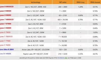 AMD CPU返修率报告:7800X3D还不到0.5%
