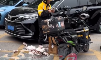 外卖小哥打翻32杯奶茶原地发愣 品牌方回应:会优化包装