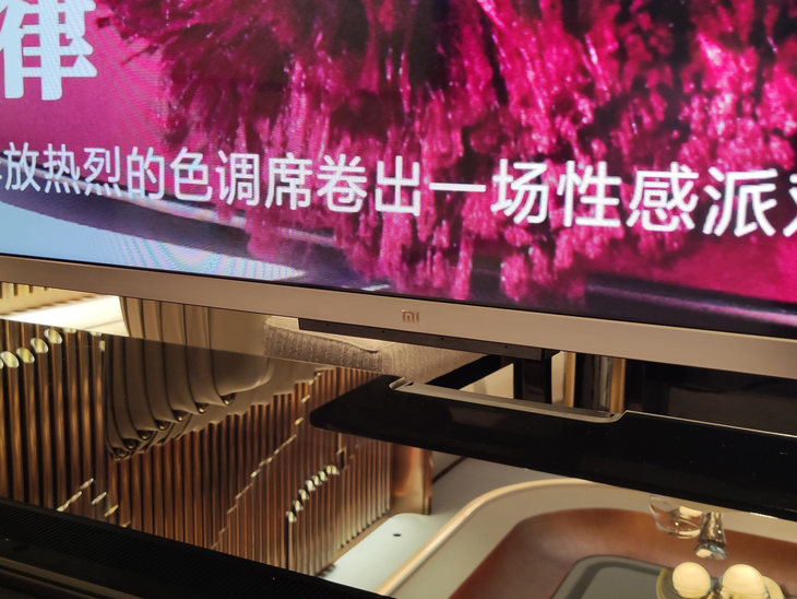 下边框中央位置设计了拾音孔,支持远场语音功能。用户只需呼叫“小爱同学”,即可对这台电视发号施令,相当的方便,比传统的遥控器好用多了。
