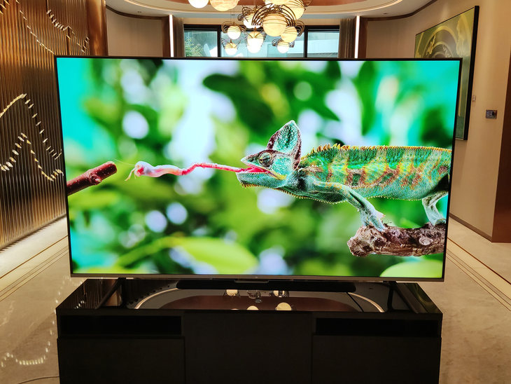 相比主流的55英寸和65英寸,82英寸的屏幕看上去明显要大上很多。
