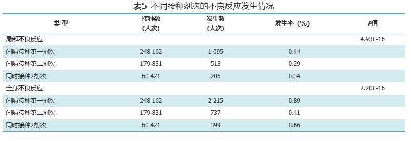 接种剂次差异上,第一剂次不良反应发生率高于第二剂次,同时第二剂次的不良反应低于第一针。