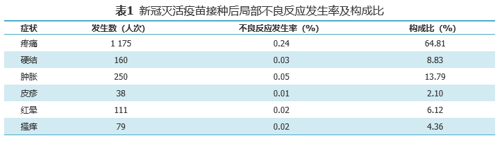 局部不良反应主要是接种部位疼痛、肿胀、硬结,发生率分别为0.24%、0.05%、0.03%,另外还有瘙痒、红晕、皮疹,发生率仅为0.1-0.2%。