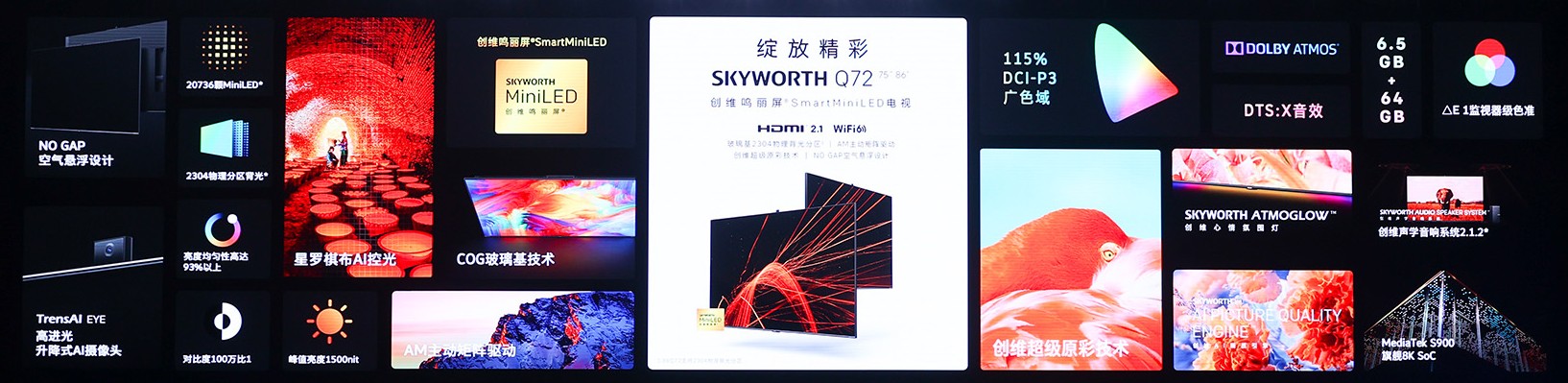 本次发布会,创维电视携手京东方推出全球首款应用COG玻璃基技术的量产电视产品:MiniLED电视Q72,并公布了MiniLED屏幕的商品名“鸣丽屏”。鉴于三星、LGD在OLED面板方面的统治地位,引入MiniLED产品线也让“国产面板”的崛起引人关注。它支持拼接的特性也有利于在今后做出比OLED明显更大的整块屏幕。