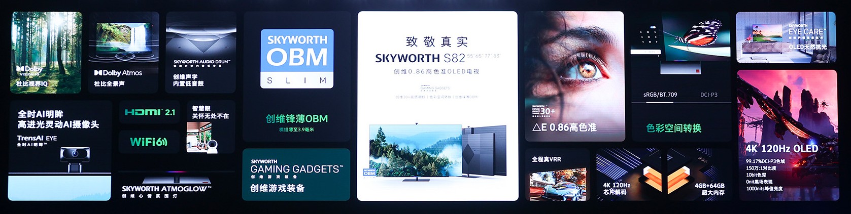 S系列是创维的旗舰产品线,S82这款OLED电视(55寸11999元、65寸20999元)的最主要卖点是“△E 0.86超高色准”,将画质提升作为高端机型的核心产品诉求。