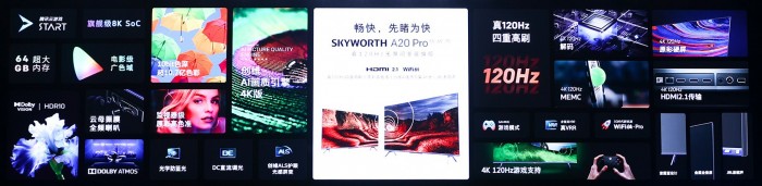 一年前宣布的创维新产品线“A系列新锐电视”,主要针对年轻人,也有比较明显的价格优势。本次发布的A20 Pro(55寸4399元、65寸5599元、75寸7999元)就是这样一款能充分满足用户对尺寸、分辨率、基础功能等基本需求的型号,强调稳定的4K 120Hz高刷新率输出,让影音播放和游戏避免画面抖动、重影以及拖尾等问题。