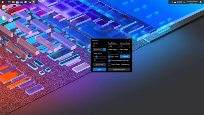使用 RoundedTB 最简单的方法是简单地输入一个边距和角半径。RoundedTB 存在于系统托盘中,只需右击它的图标就可以访问所有的设置。