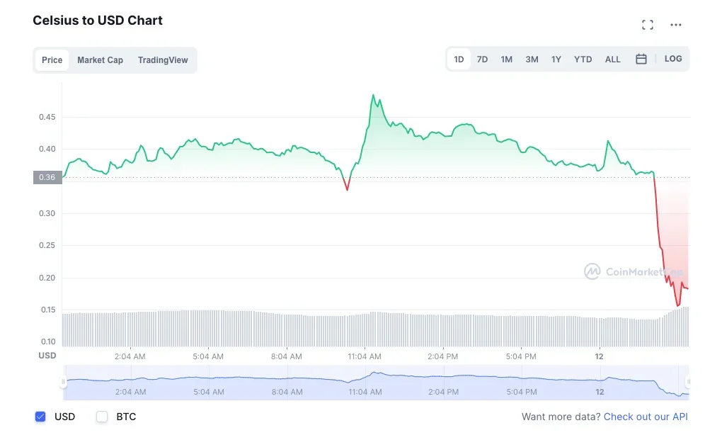 根据CoinMarketCap的数据,该公司的CEL代币迅速做出反应,在一小时内从周日早些时候的0.49美元的前期高点下降到0.15美元,下跌了70%。