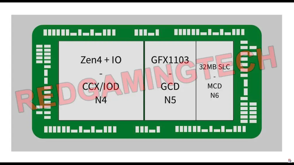 RedGamingTech 还分享了一个图表,描绘了一个带有三个小芯片、一个 Zen 4 和 IOD 复合体、一个带有 RDNA 3 的 GCD 和一个带有 32 MB SLC 缓存的 MCD 的 Phoenix Point 芯片。