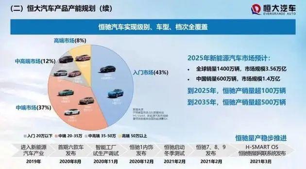 在恒大汽车看来,恒驰5及恒驰6面向的市场是一块肥肉。根据恒大汽车产品产能规划显示,恒驰5、恒驰6面向的入门市场预计占总市场份额的43%。