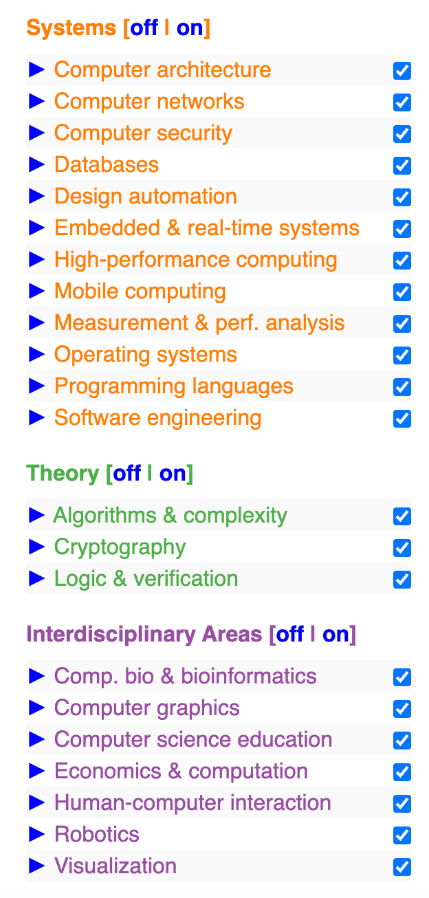 CSRankings的目标是提供一个公开、透明、客观的CS系(不只是CS总体,而是各个子领域如AI、系统、理论等)在研究产出上的比较。
