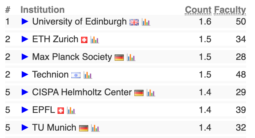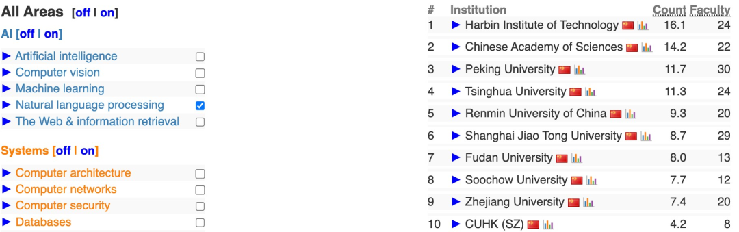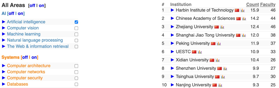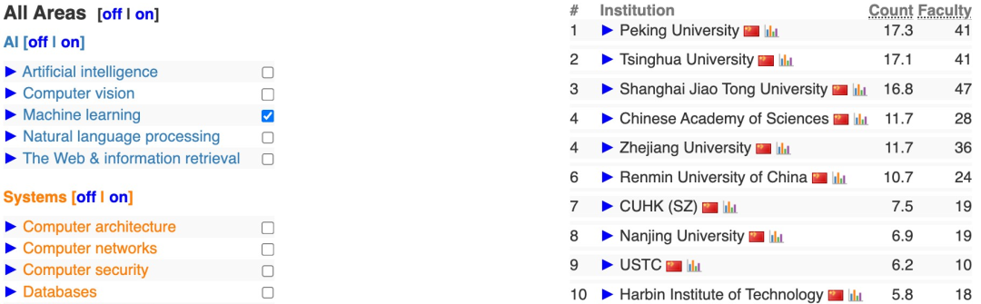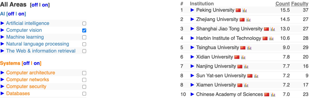 它并不试图衡量教育质量、声誉、教学或排名中的同行评价这些“软因素”,而是专注于科研产出,尤其是发表在顶级会议的文章数。