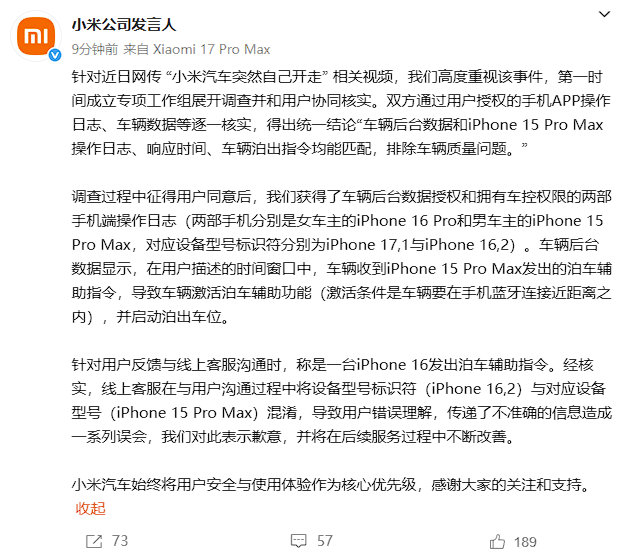 小米汽车始终将用户安全与使用体验作为核心优先级,感谢大家的关注和支持。