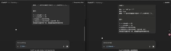 而到了复杂的编程难题,反而是 5 Thinking 更快给出了错误结果,5.1 思考了更长的时间给出了正确答案。