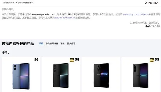 没有一句再见,索尼手机就这么悄无声息退出中国市场。2025年11月6日,索尼Xperia官方微信公众号注销,主页显示已停止使用。而在今年8月,索尼手机中国官网域名已停止使用,官网虽然仍保留几款机型的展示页面,但已无法链接至商品详情页。