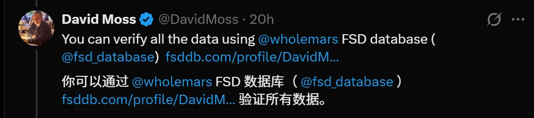 对于好奇的网友,Moss表示,你可以登录FSD数据库,验证所有数据。