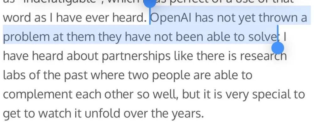 奥特曼称赞他为“不知疲倦”,指出他在解决看似不可能的问题方面的作用。