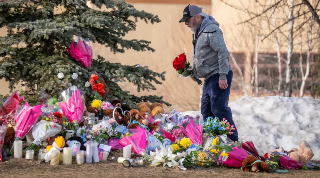 只有Tumbler Ridge那棵云杉树下堆积如山的花束,和在二月寒风里颤抖的蜡烛。