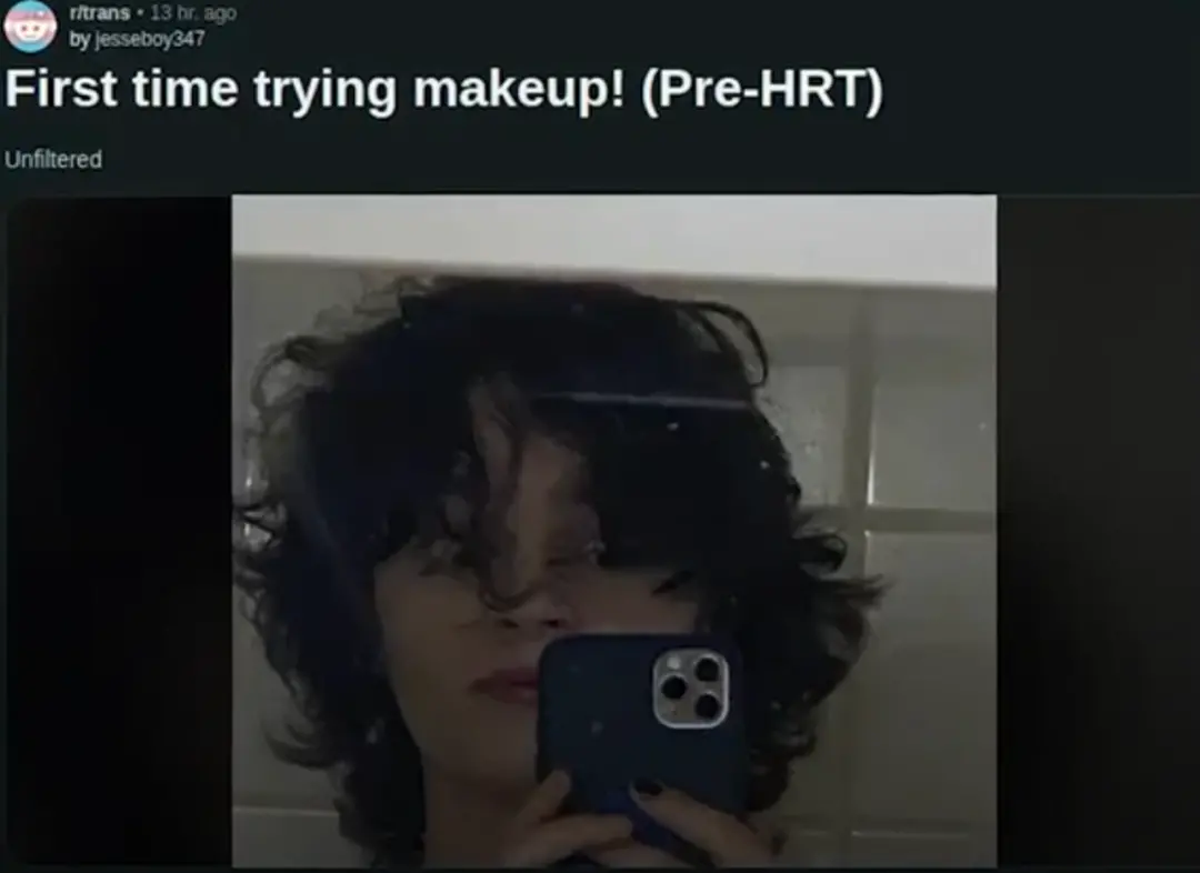 (Jesse在网上发帖,称第一次化妆,但还没开始激素治疗)