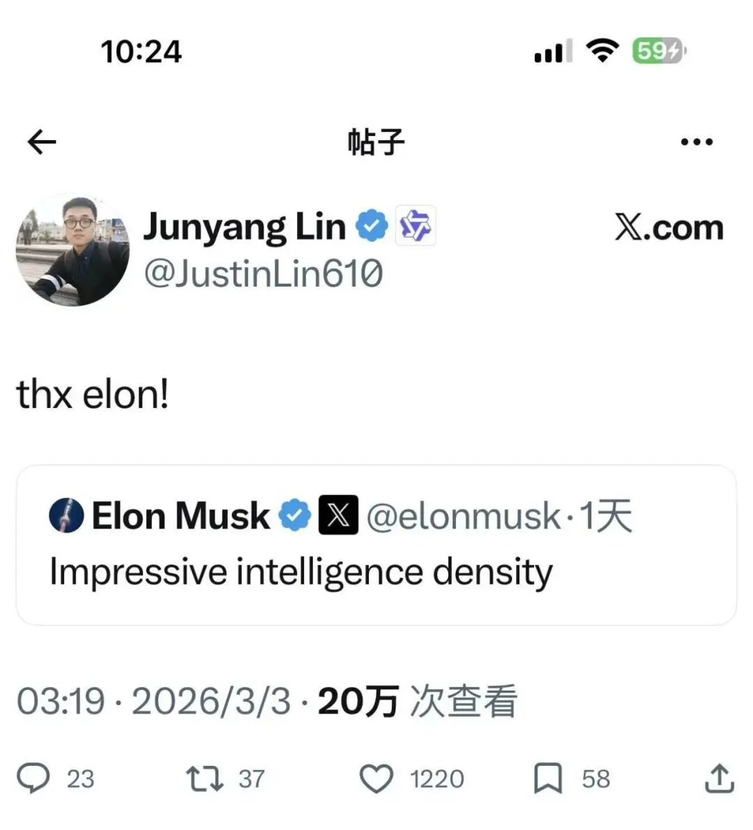 而就在不久前,作为千问技术负责人的林俊旸还回应了马斯克对于千问的赞美。