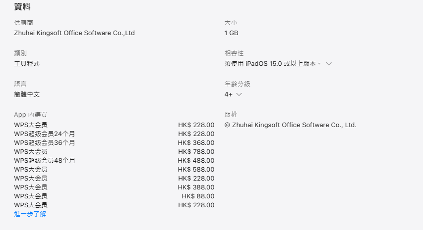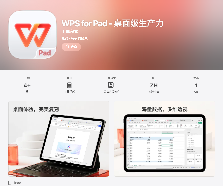 今日,金山办公推出的WPS for Pad正式版已在苹果App Store港区上架,国区预计也将很快上线。App Store页面显示,WPS for Pad目前仅支持简体中文,设备需安装iPadOS15.0或更高版本系统。