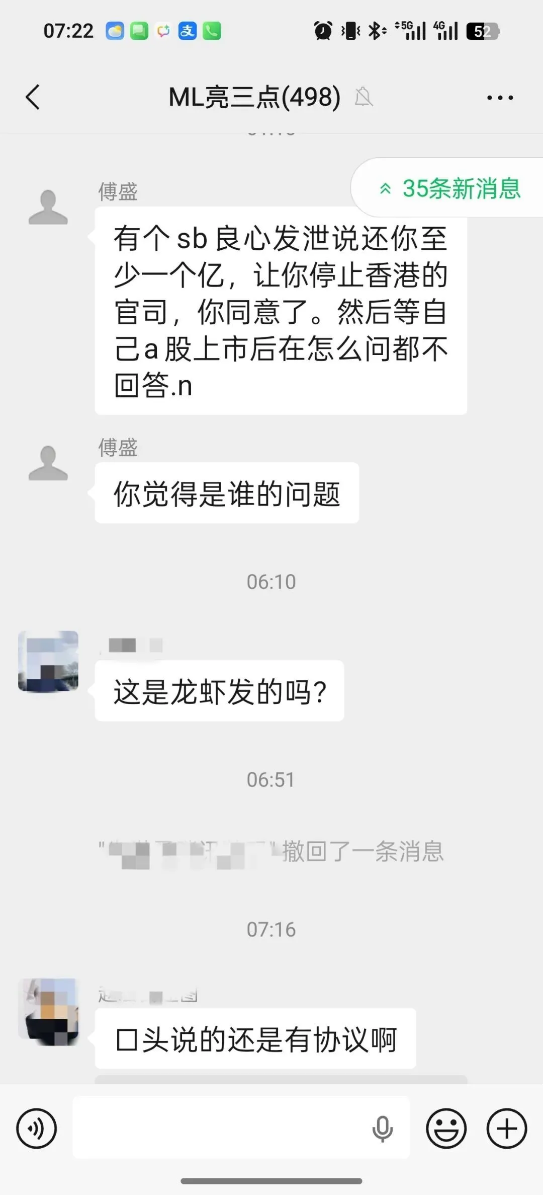 群内其他成员反应不一:有人质疑“这是龙虾发的吗?”(傅胜最近一直说龙虾在帮其办公),也有人追问“口头说的还是有协议啊”。截至目前,周鸿祎尚未对此作出公开回应。