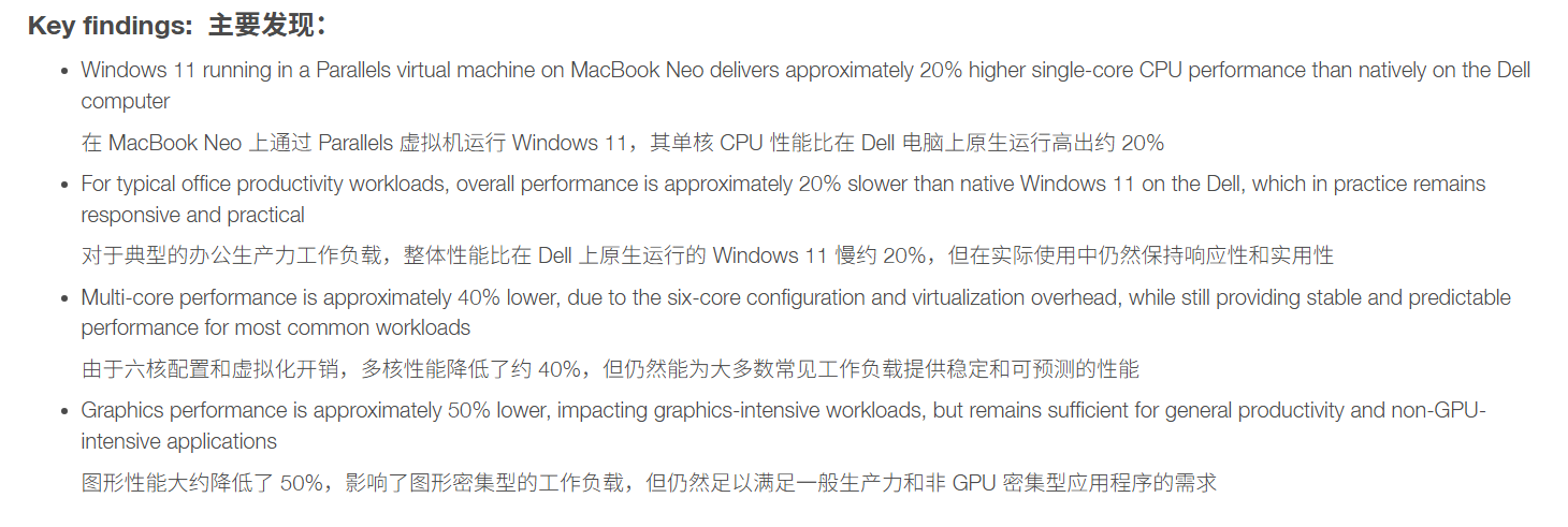 这意味着对于大多数日常办公工具、网页浏览器或轻量办公软件而言,MacBook Neo通过虚拟机运行的响应速度反而更胜一筹。