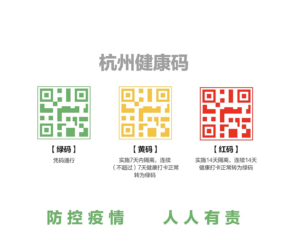 2月11日,浙江省杭州市率先推出健康码模式,实施市民和拟进入杭州人员的“绿码、红码、黄码”三色动态管理,并与钉钉企业复工申请平台打通。领取绿码的人员凭码通行,领取红码和黄码的人员需按规定隔离并健康打卡,满足条件后将转为绿码。大量返岗复工人员在支付宝内申领健康码,上线首日访问量即达到1000万。
