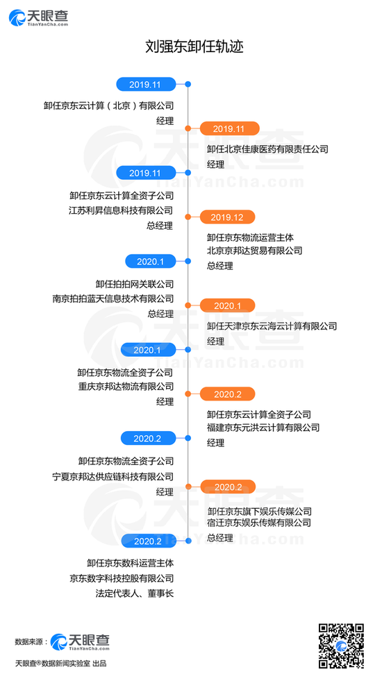 据不完全统计,从去年11月起,刘强东共卸任包括2家京东物流全资子公司的高管职位,以及京东云计算全资子公司、京东旗下娱乐传媒公司、拍拍网关联公司等公司的高管职位。