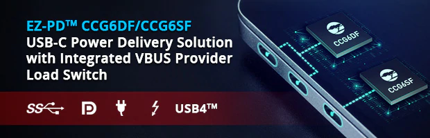 美国芯片厂商赛普拉斯(Cypress)今天宣布了全新的单芯片USB 3.2主控制器,也在一定程度上支持未来的USB4。新主控有两款型号EZ-PD CCG6DF、EZ-PD CCG6SF,分别支持两个、一个USB接口,都支持USB 3.2标准规范、PCIe协议、DisplayPort视频输出、USB PD 100W供电、故障保护。