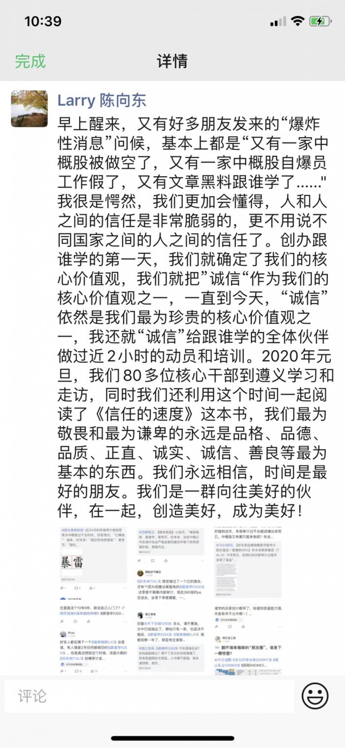 陈向东朋友圈截图