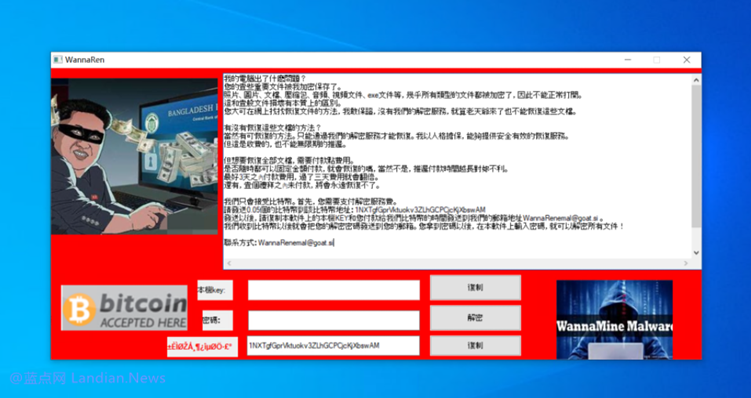 刚看到这款勒索软件界面时蓝点网一度认为这是个恶搞的 , 因为界面与WannaCry相似且界面还挂有某胖的图片。但从目前安全专家分析来看这款勒索软件并不是恶搞的,因为其目的明显并且攻击性非常强还使用多种攻击手段。最主要的执行路径是通过网络渠道带毒传播,然后通过 PowerShell 下载器加载病毒,最后病毒会释放勒索软件。