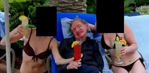 据青蜂侠报道,日前,美国司法部就爱泼斯坦案曝光霍金与两名身穿比基尼的女子合影照片。画面显示,霍金手持鸡尾酒杯躺在躺椅上,身旁有两名身穿比基尼的女子,其中一人协助其扶稳酒杯,另一人举杯互动。